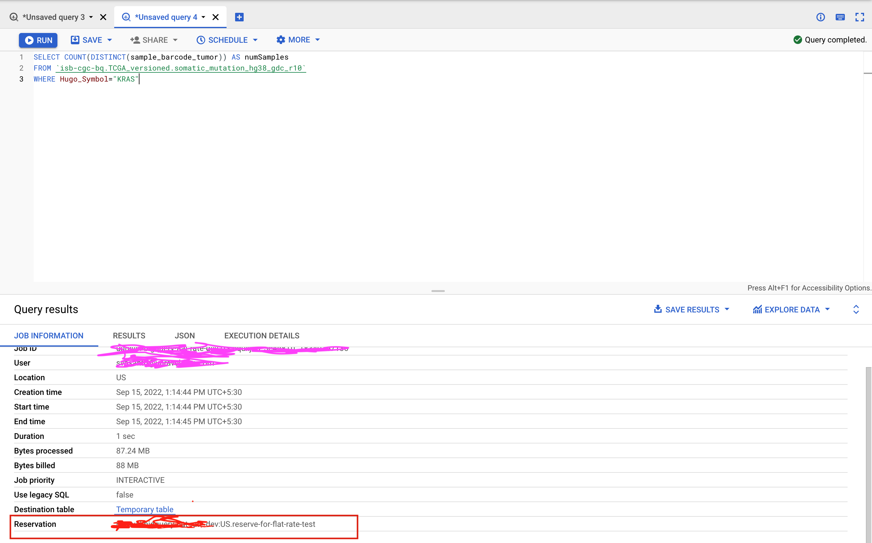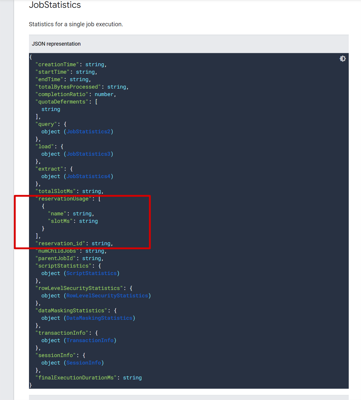 但是,通过bigquery库,我调用bigquery API接口来通过jobId获取作业对象。在这一点上,我无法找到这些查询之间的区别,至少我希望在统一利率价格查询中有一些与预约有关的信息,但没有运气。我需要这个信息在我们的监控工具,以确定不同的查询是按需执行和统一费率。