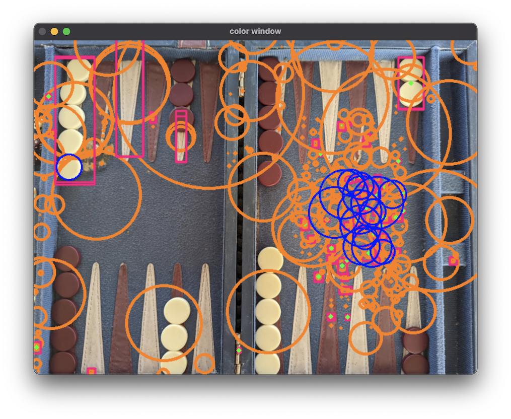 因此,我使用OpenCV (在Go with OpenCV中)尝试从一个木板游戏中提取碎片。最初,我在处理这个问题时取得了一定的成功,手动找到了每个球员的HSV值、颜色和棋盘位置。我成功地做到了这一点,并对每一件作品及其在董事会中的位置进行了规划。缺点是,如果使用不同的板--“查找”所有正确的HSV值,则需要相当严重的人与人之间的交互。I asked here建议从忽略颜色开始,找出所有的片段,然后使用颜色聚类算法来确定它是哪一个播放器。我可能也得为这些职位做点什么,但那是第二阶段。