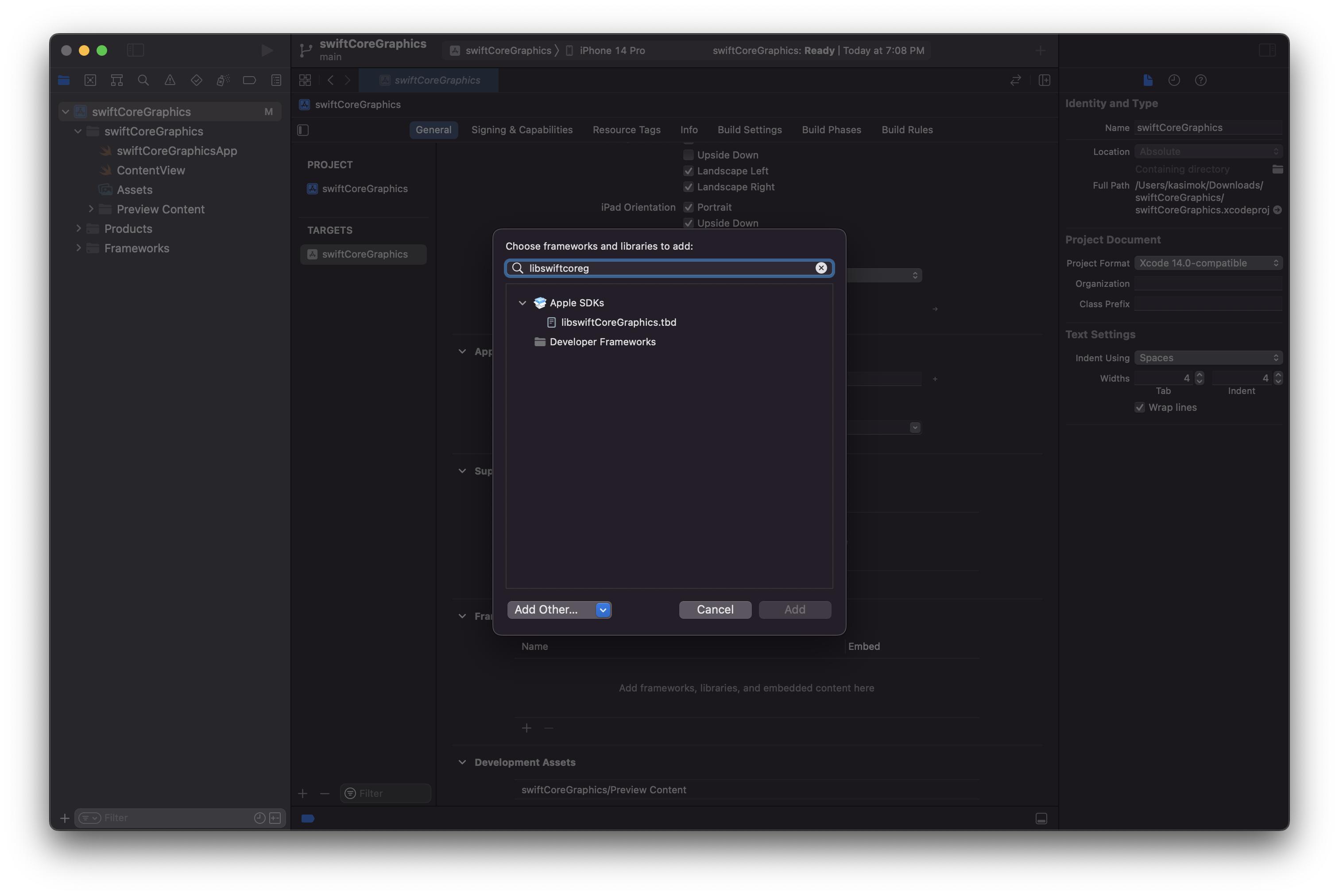 /usr/lib/swift/libswiftCoreGraphics.dylib (compatibility version 1.0.0, current version 120.100.0)添加链接器标志后,它显示为: