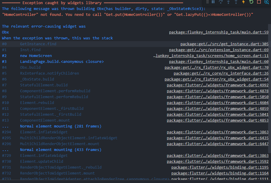 我在登录屏幕上使用Get.find(),在主屏幕上使用Get.find(),如下所示,
