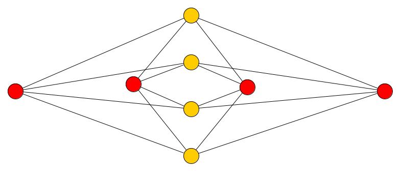 首先,我必须说我来自数学背景,而且我对Python编程的知识很少。我的工作是绘制完全二部图与的最低过境数。例如:K(4,4),是下图中给出的具有8个顶点的完全二部图(分组为4-4)。