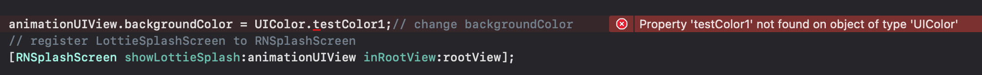 }我希望在AppDelegate.mm中加载自定义颜色,但得到了以下错误。