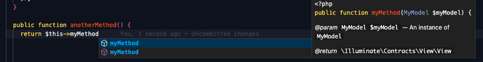正如您所看到的,VSCode现在知道什么是myMethod,它期望和返回什么,以及如何使用它等等。它们不是严格要求的,因为有些IDE可以自动检测方法、参数和返回,但它们可以帮助。