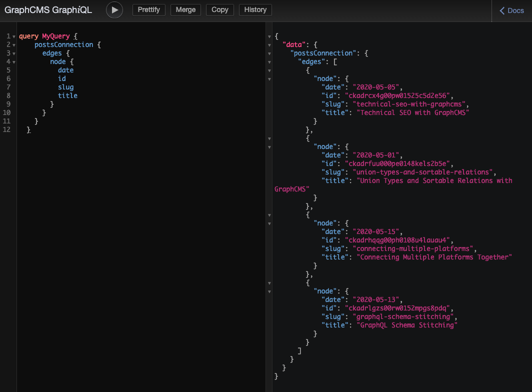 当我转到由GraphCMS提供的content链接时,它工作得很好,正如您在下面的屏幕截图中看到的那样。