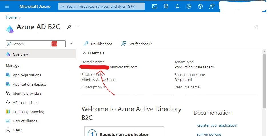 确保您使用的是租户名称,而不是租户ID,这个值的位置可以在下面的红色图像中找到。它是您在设置租户时所选择的任何alpahnumeric值(.onmicrosoft.com之前的内容)。