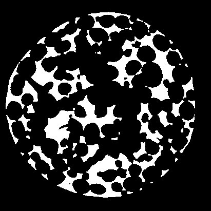我有一堆开放的多孔结构的二进制图像,我想得到一个二元掩模,它覆盖了整个结构(结构本身和结构中包含的空洞)。我认为实现我的目标的一个好方法是计算图像的凸包。这在使用skimage.morphology.convex_hull_image的Python中工作得很好(见图)。