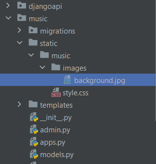STATICFILES_DIRS = (os.path.join(BASE_DIR, "music\static"),)您可以在下面看到我的项目树,以获得更多的澄清: