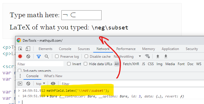这个问题可以使用浏览器控制台直接在MathQuill页面(http://mathquill.com/)上再现: