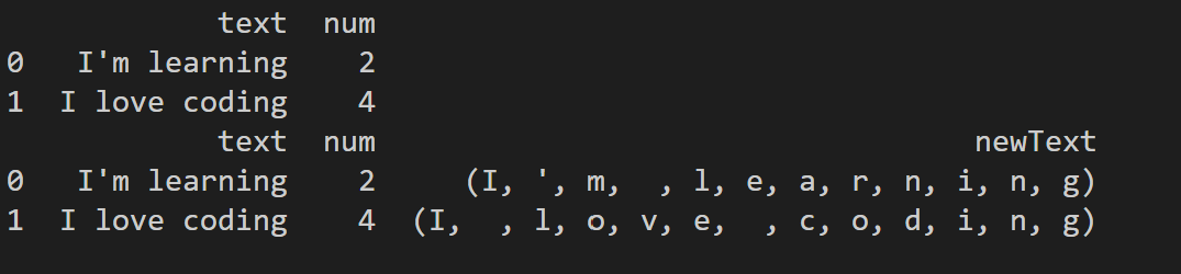 df['newText'] = df['text'].apply(lambda x:(TextBlob(x)))输出将看起来像: