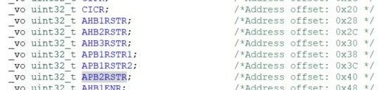 _vo uint32_t AHB1RSTR;否则,编译器不知道您希望AHB1RSTR位于偏移量0x28。