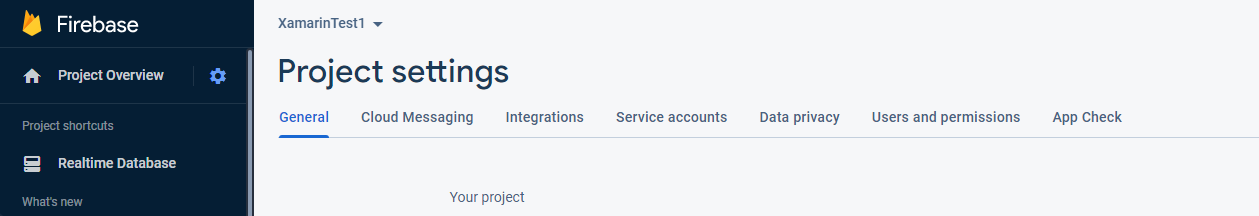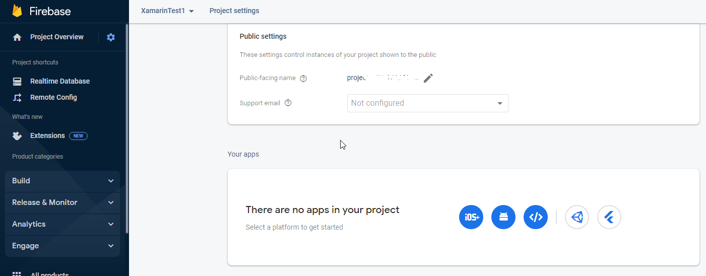 您可以单击Firebase项目的iOS或添加app图标,并确保Apple与Xamarin.iOS项目的info.plist中的bundle标识符匹配,Android包名与Xamarin.Android项目的AndroidManifest.xml中的packagename匹配。注册该应用程序后,您可以下载用于Android的google-services.json文件和用于iOS的GoogleServiceInfo.plist文件。
