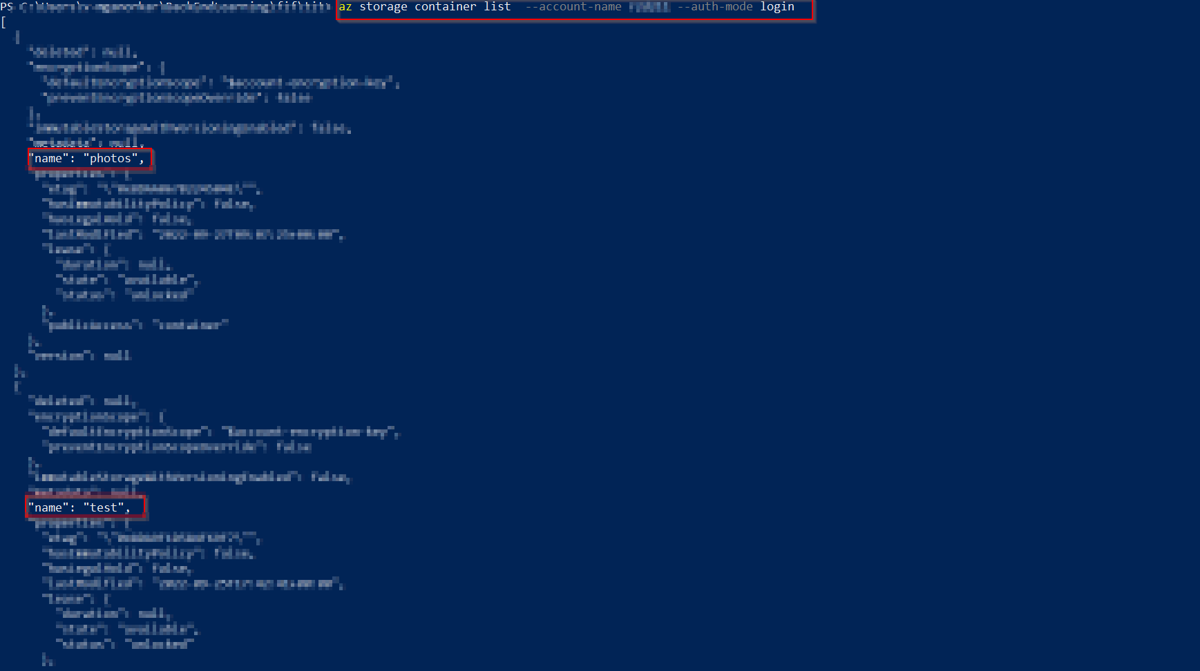 az storage container list --account-name <name> --auth-mode login这将提示您输入登录凭据,前提是输出应该如下所示