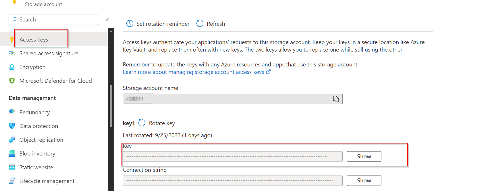 az storage container list --account-name <name> --auth-mode key <key>您可以从访问密钥下的门户获取密钥。