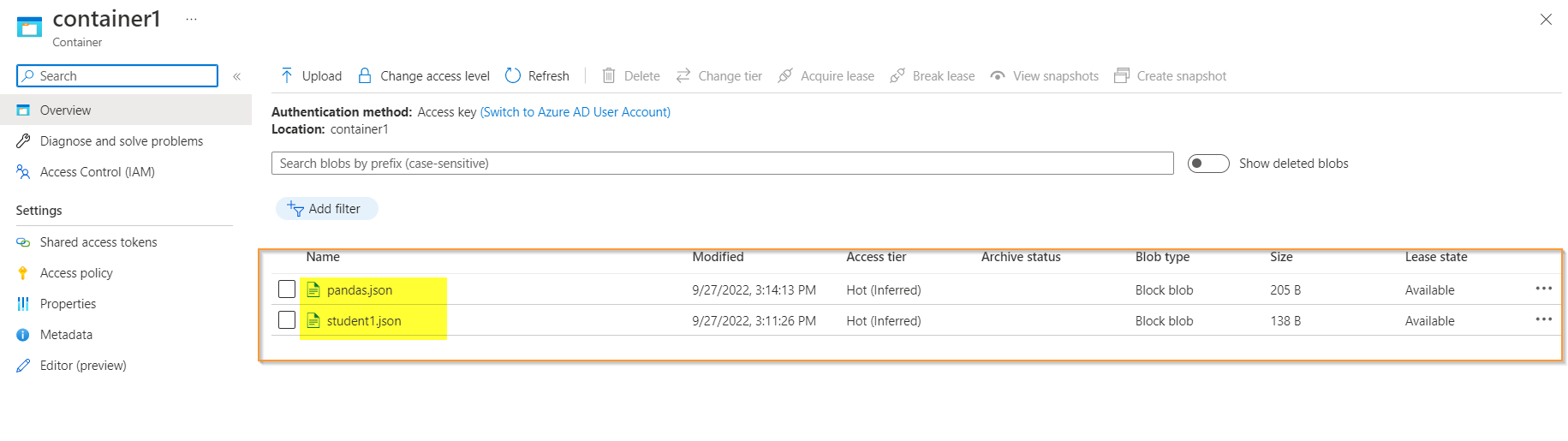 上述错误表明,在您的存储帐户中,您没有创建任何容器和文件。