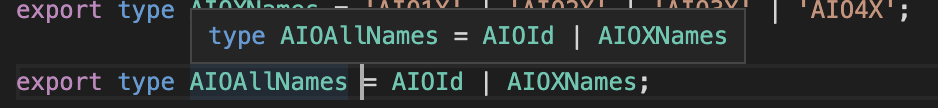 export type AIOAllNames = AIOId | AIOXNames;当我在AIOAllNames上悬停时,它显示如下: