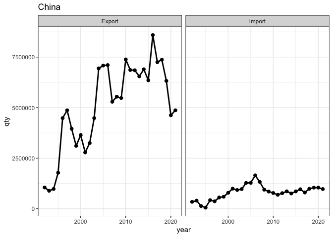 作为背景,一揽子方案要求从商品贸易委员会数据库获得数据(例如中国1992-2021年的鱼出口)。