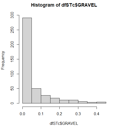 我有一个连续变量,从0到1(百分比数据,包括0),我想确定最佳的分布来建模它。我上的是R-Studio,数据有问题的这里。请注意,大约27%的观测值为0,我计划在进行过程中探索零通货膨胀。