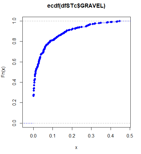 我检查了直方图和ecdf (见下文),以了解我正在处理的是什么。菲特弗勒斯给了我'beta',而gamlss给了我一个Pareto类型2,这我不是很熟悉。