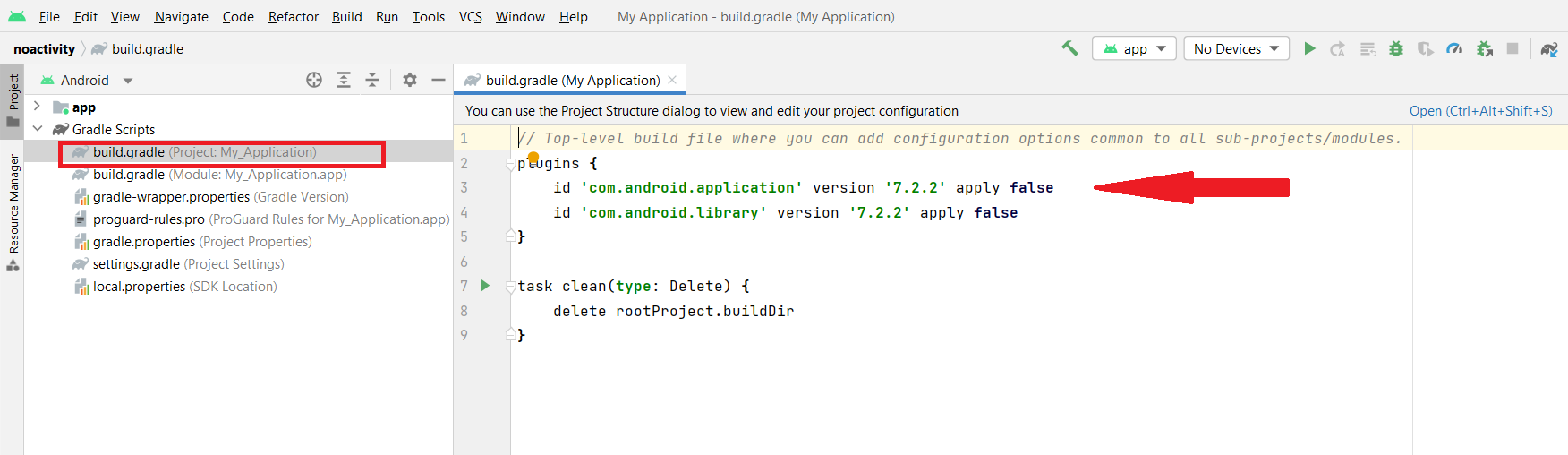 在gradle文件中将版本更改为7.2.2,如图像所示