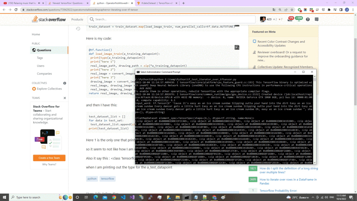 当我试图用tf.data构建一个输入管道时,我得到了一个非常奇怪的错误。我正在把我的参考图像和我的画组合成一个元组。然后我把它加到清单上。这应该能行,