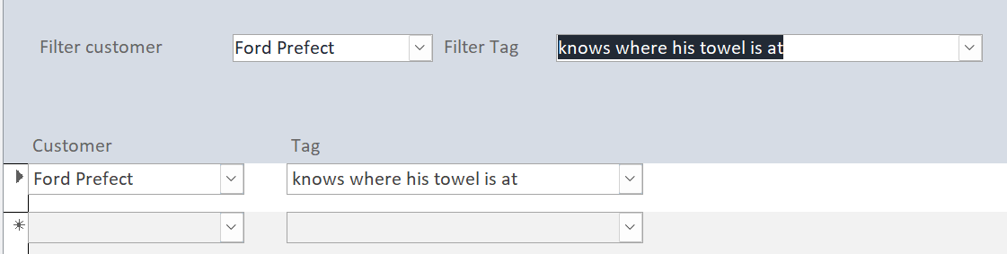 Me.filter = "(CustomerID = " & Me.cmbCustomer & ") AND TagID = " & Me.cmbTag