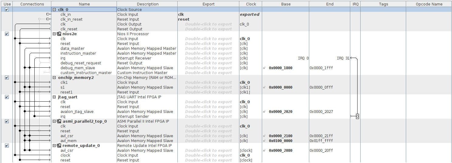 我正在使用QUARTUSPRINE20.1.1为Cyclone10LP FPGA编写一个更新过程。平台的设计如下所示。