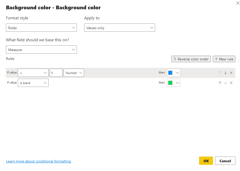 Measure = IF(MAX(Table1[StartDate]) > MAX(Table1[EndDate]),1)转到单元格元素以确定结束日期。
