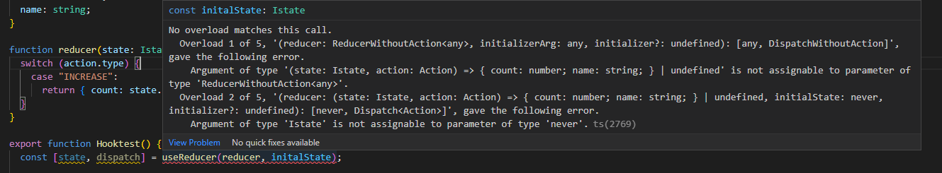 嗨,我正在学习的每个人都用typeScript来反应钩子,我有useReducer的测试杆,我知道它是如何工作的,但是当我在我的项目中实现它时,我有错误。