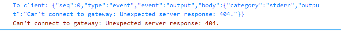 调试开始,但连接失败。我可以清楚地看到客户端试图连接的调试日志,但是由于网关错误而无法连接。