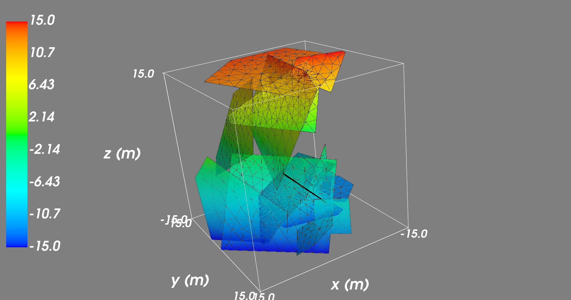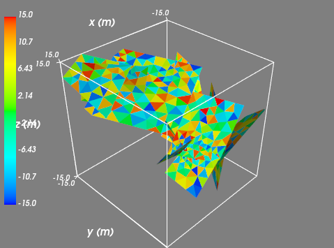 我用的是mayavi和Python。假设我有一个三维曲面网格的数据集:顶点X, Y, Z的位置,以及由节点数组成的三角形T (维数:e* 3)。该网格具有N个顶点和E三角形。我可以像下面这样绘制网格