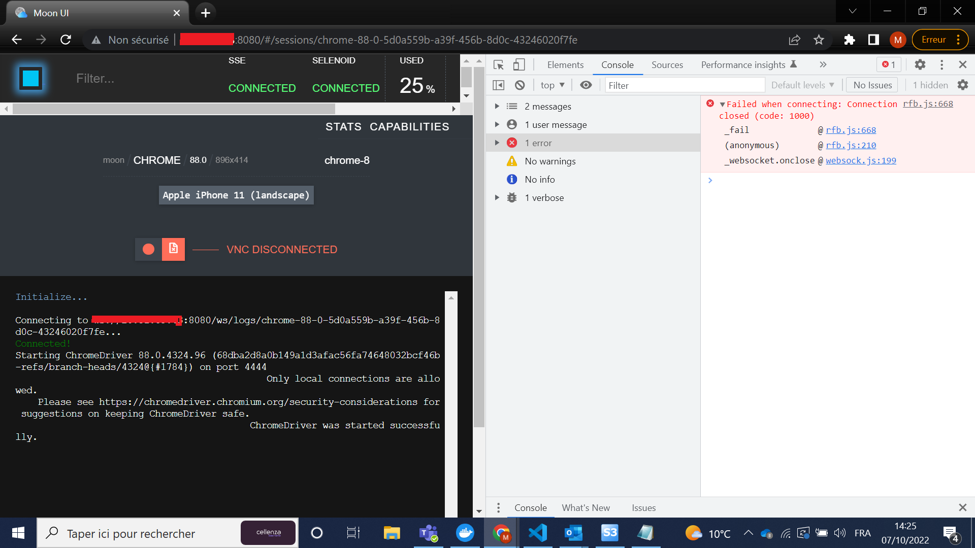 我在我的k8s集群上部署了,在我的代码中启用了vnc选项,但是我无法看到在VNC上的测试执行,并且我得到了以下错误: