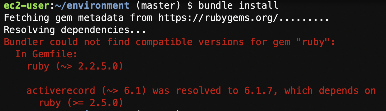 我的尝试是更新红宝石的版本。然而,这是行不通的。我还研究了与ruby版本2.2.5相对应的activerecord兼容版本,但我没有找到任何版本。