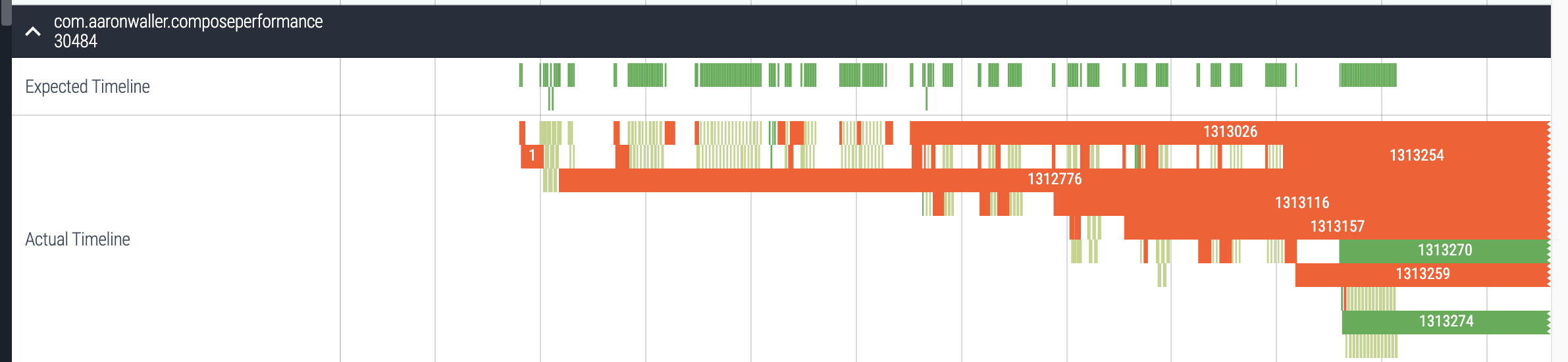 当我记录跟踪并在perfetto中查看它时,它向我展示了许多jank: