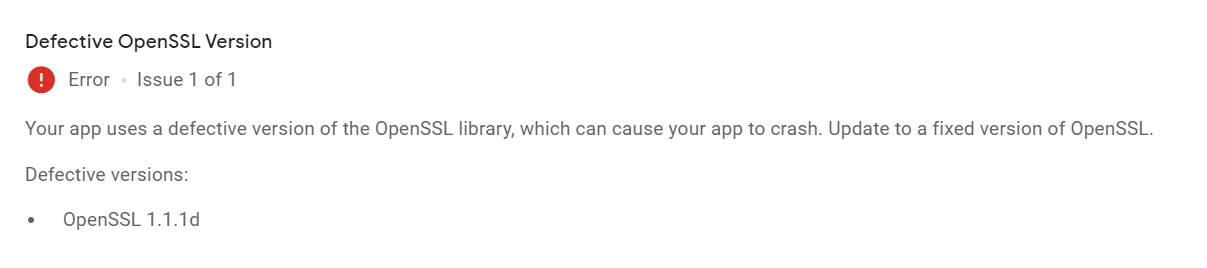 我们上一次Google发布前的报告存在openSSL版本稳定性问题。应用程序不直接使用openSSL,因此它应该在第三方库中使用。如何找到哪个第三方库正在使用此缺陷版本的openSSL?
