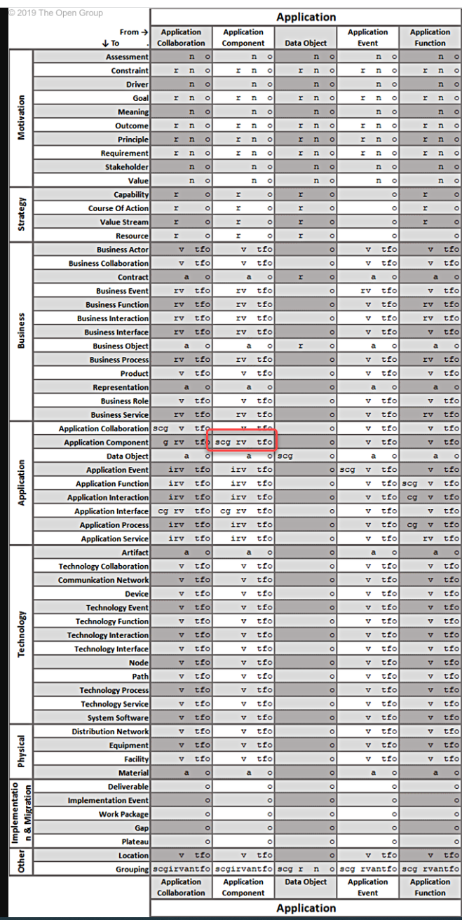但这些并不是--所有-- ArchiMate中允许的关系。在此页上有一个包含所有允许关系的附加矩阵。
