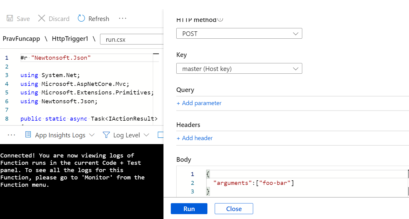 我在一个孤立的进程中使用Azure函数,在发布命令之后,将创建worker.config.json文件。我没有找到多少关于这个文件的文档,但是我尝试过编辑它并添加“参数”属性,然后看起来如下所示: