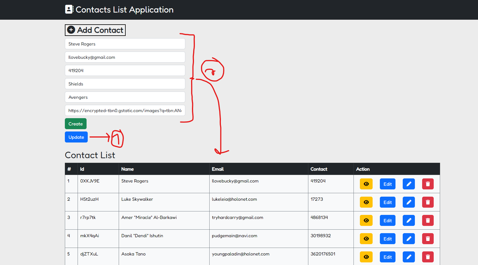 <h2>Contact List</h2>