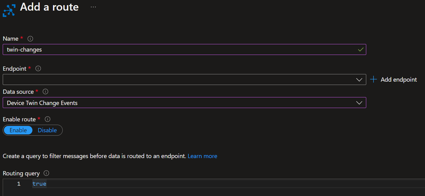 您提到要将设备Twin更改发送到Azure函数,您可以通过利用端点和消息路由来实现这一点。您可以将消息路由配置为这样做:[