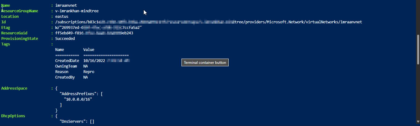 $virtualNetwork = Get-AzVirtualNetwork -Name $vnetName -ResourceGroupName $vnetRgName | Get-AzVirtualNetworkSubnetConfig -Name $snet