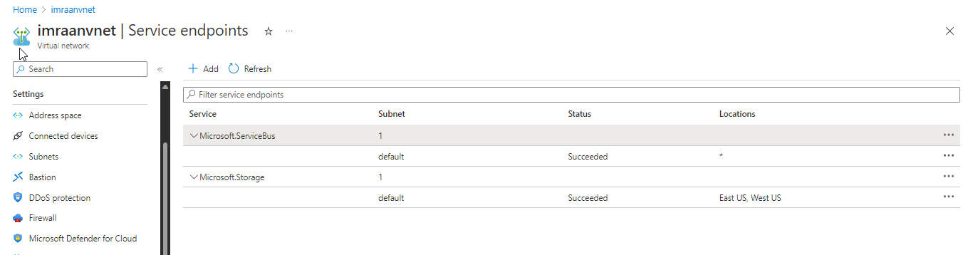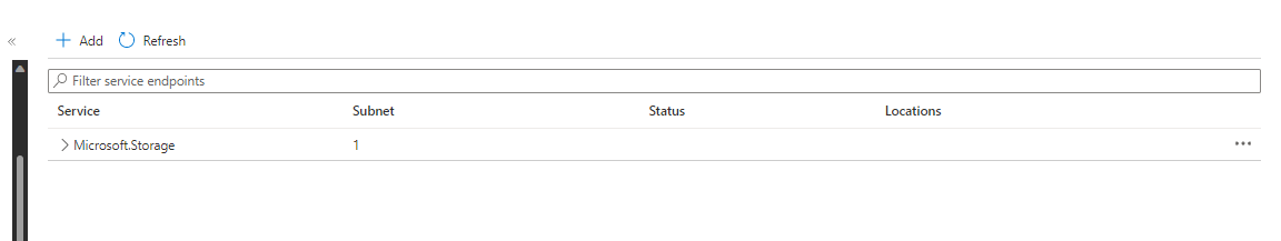 我已经创建了带有默认子网的microsoft.storage服务端点,如下所示。