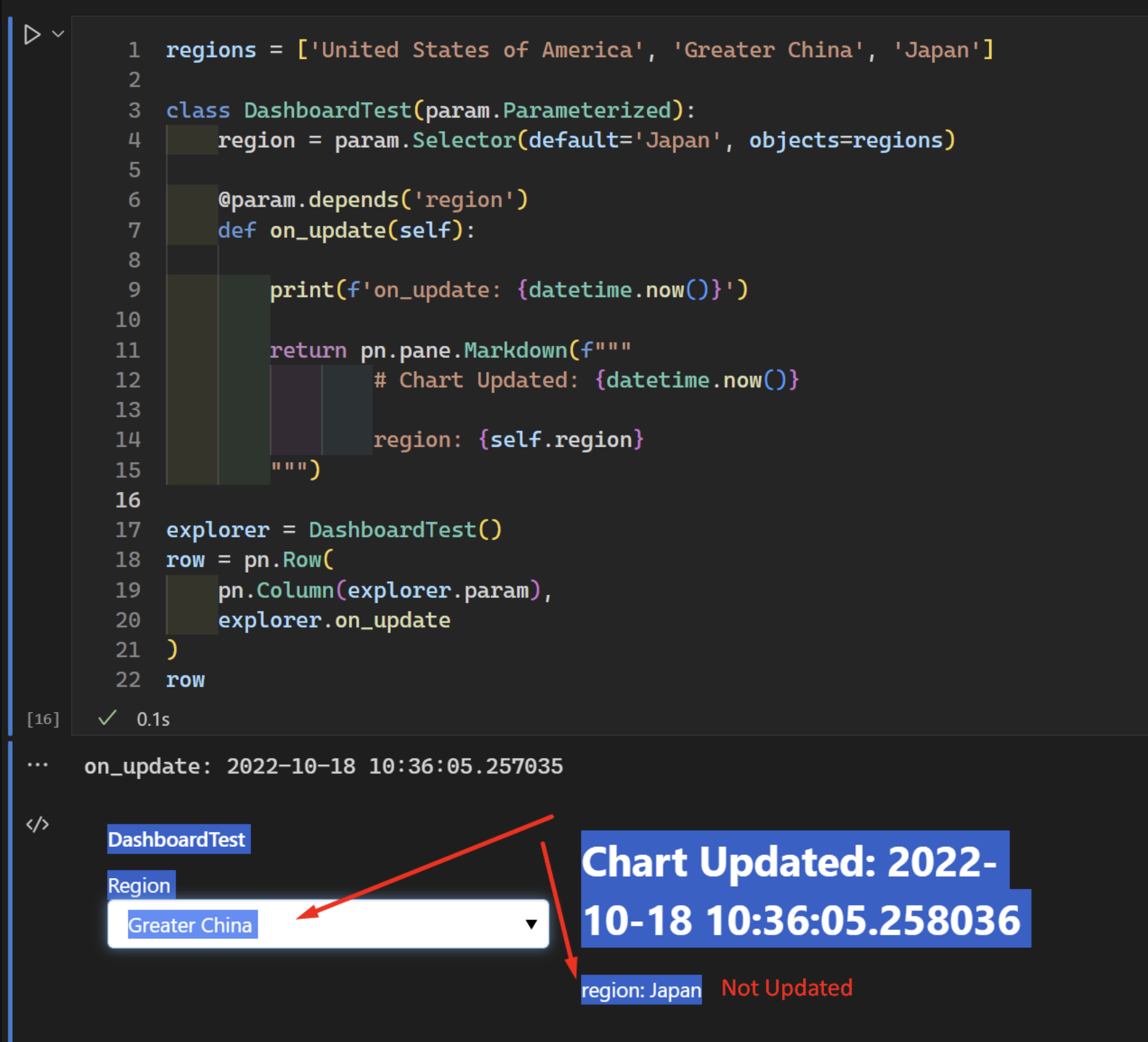 链接似乎不起作用。我创建一个仪表板或链接小部件(下面的代码示例),然后在下拉列表中更改一个值,这样就不会发生任何事情。我期待“链接代码”被调用,但实际上,似乎什么都没有发生。Print语句不会显示,UI中的输出不会更改。我遗漏了什么?