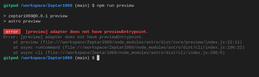 我一直在制作一个https://astro.build网站,过了一段时间后,运行astro preview it错误。这是我的astro.config.mjs代码: