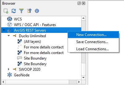 我试图在QGIS3.20.2中向我的QGIS工作区添加一个ArcGISMapServer连接。添加此连接的选项未出现在数据源管理器或添加层选项中。现在只有一个添加ArcGIS Rest服务器的选项: