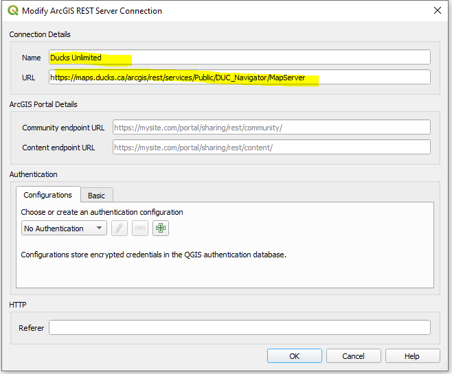 然后,您可以添加一个服务器名和URL来访问这些层。如果需要,提供身份验证: