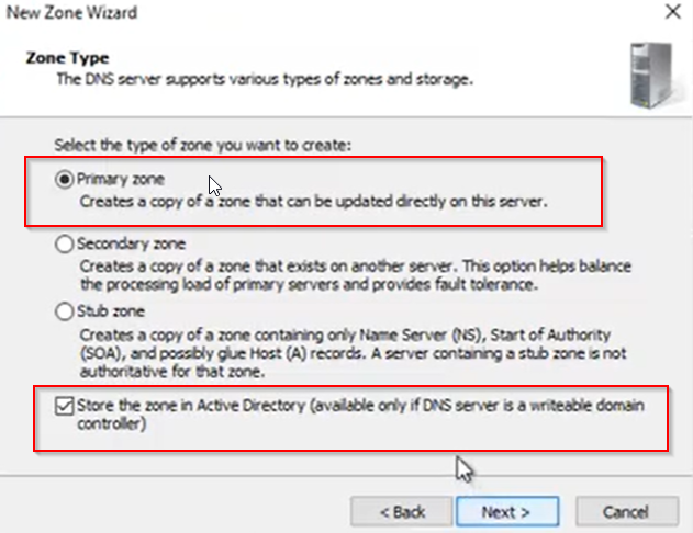 单击“下一步作为主区域”,检查“存储区域”框->Next ->,单击第二个选项“所有dns server...in、域-> IPv4反向查找-> Next”