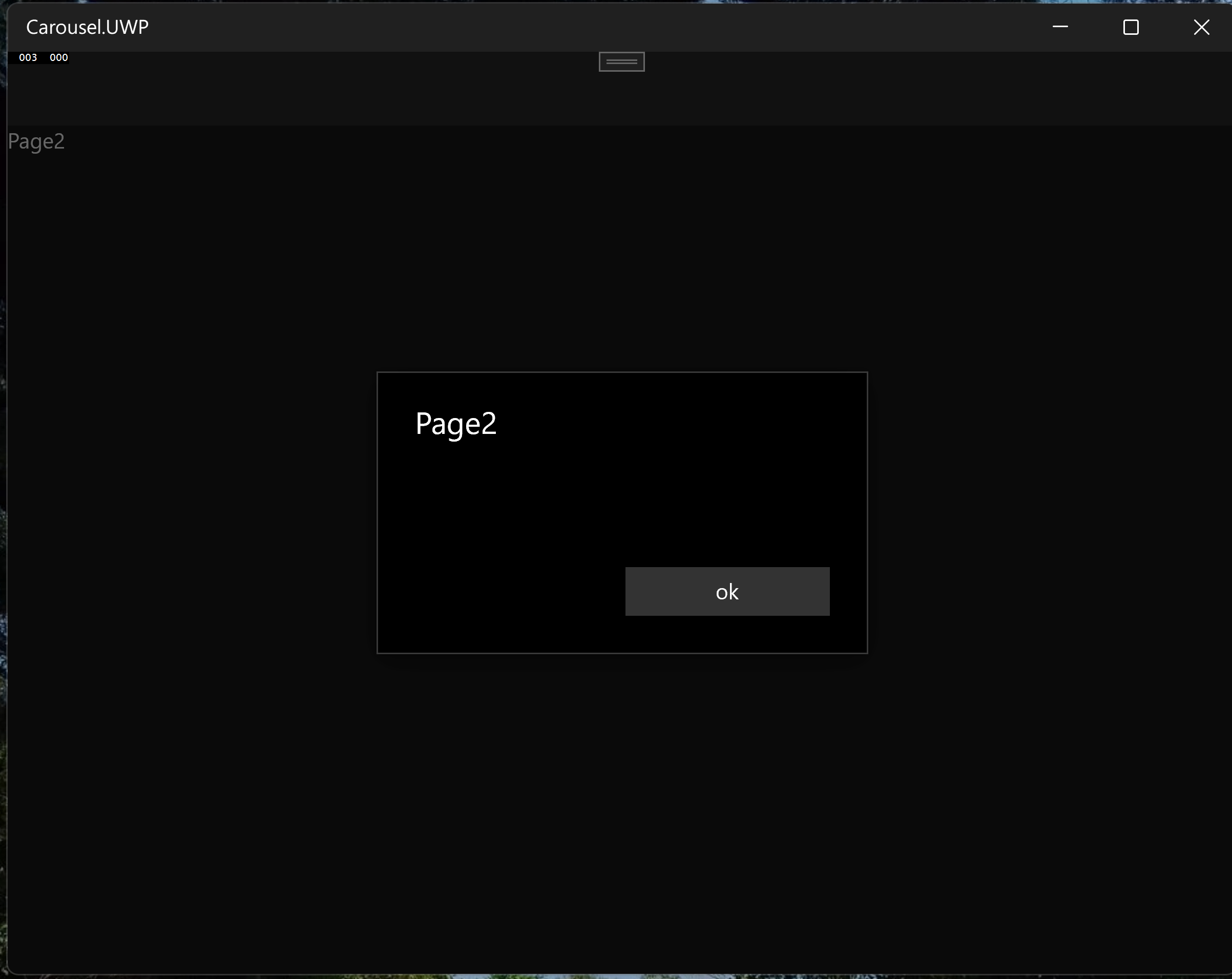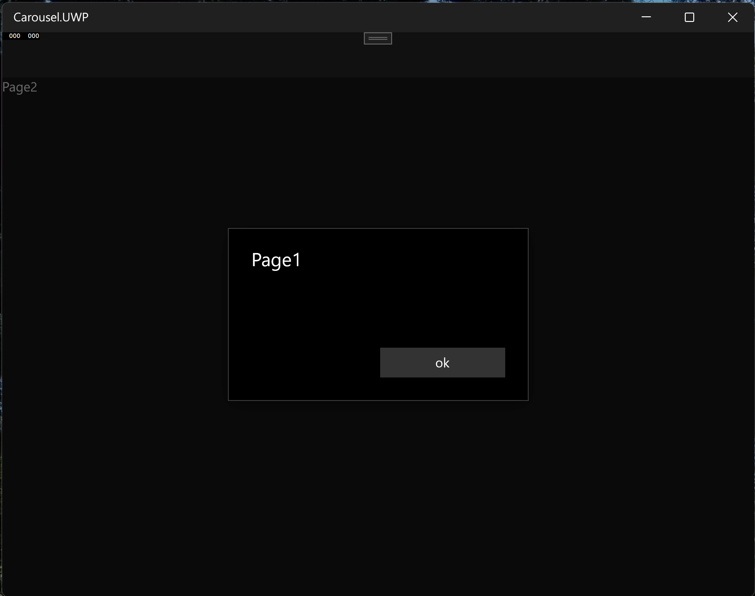 }运行UWP Page2警报显示。