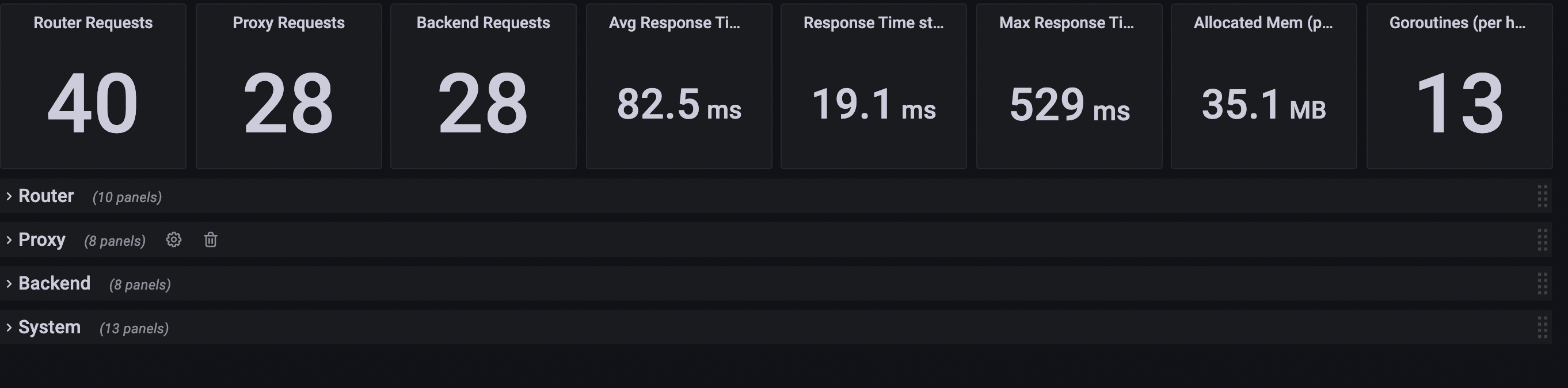 我正在使用krakend-ce 1.4和流入1.X,我已经配置了grafana仪表板,并希望看到仪表板的所有层。每个仪表板有4层。