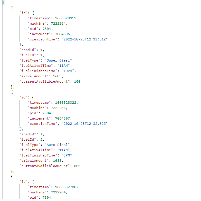 var documents = NewCollection.Find(filter).ToList();这应该返回This 1的所有记录,从那里您必须解析来自每个记录的燃料数据。
