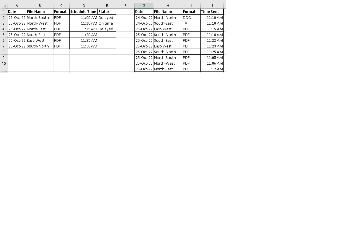 例如,如果文件日期25-10月-22是在26-10月-22发送的,这意味着答复应该延迟,同样地,如果文件日期25-10月-22是在25-10月-22,如果计划时间是上午11:00,但它是在上午11:05发送,那么结果应该再次延迟,这意味着我们需要比较发送的文件应该是在同一天和最后排定时间之前。这可以与以下内容进行比较