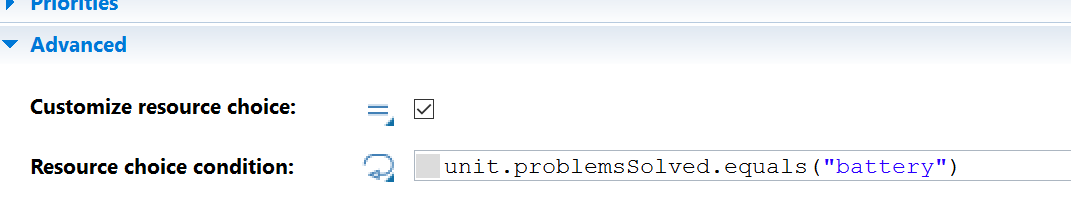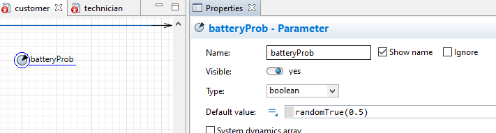 我有一个名为"customer“的代理,参数为"BatteryProblem”randomTrue (0.5),还有一个人口为3的代理“技术员”。如何分配一种技术只解决"BatteryProblem“,而另两种技术用于解决其余的与电池无关的问题?